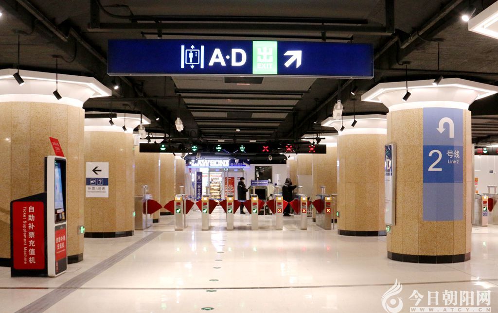 在地鐵3號線的朝陽站下車,乘坐扶梯上樓,將地鐵卡投入到閘機(jī)里即可出站。出站后,繼續(xù)搭乘扶梯上樓,看到“鐵路出發(fā)”導(dǎo)向牌,即可順利進(jìn)入高鐵站。