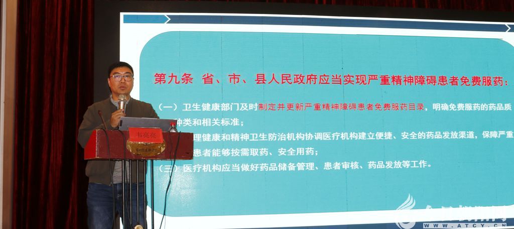 醫(yī)務科科長韋亮亮帶來了《遼寧省嚴重精神障礙門診免費服藥實施方案》的講解。他詳細介紹了該方案的政策背景、實施目標、具體措施以及注意事項等內(nèi)容。學員們通過他的講解,對該方案有了更加深入的了解和認識。
