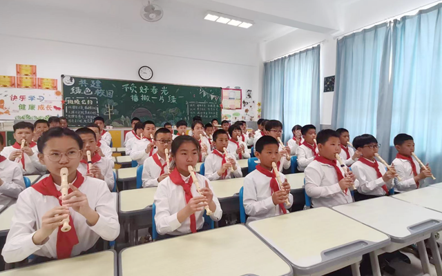 教學方面,以高效課堂、培養(yǎng)特長為特色。在國家標準課程的基礎(chǔ)上,學校又開設(shè)了英語話劇、籃球、圍棋、剪紙、聲樂、編程、誦讀、珠心算、樂器等特色課程,教師的主要精力集中在聚焦課堂管理、研究教與學、教學評估與課后反思方面,切實提高了課堂教學效果。同時,加強對學生作業(yè)批改方式的研究改進,以布置發(fā)展性、實踐性作業(yè)為主,做到及時批改、全批全改。