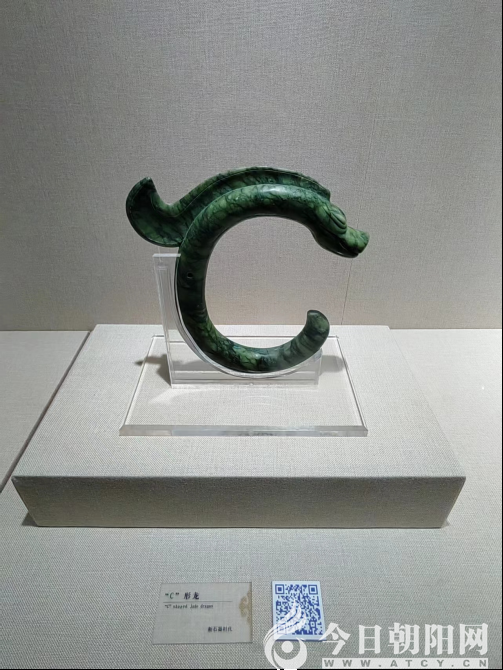 張鳳祥趕緊把它拾掇起來,和父親張金貴花了大半個晚上,除掉了鐵圈上粘連的大部分土銹,一個“C”形墨綠玉件顯現(xiàn)眼前,除了那似龍頭又似豬嘴的一端,以及外背上貼著一大塊卷曲上揚的似乎是鬃毛的造型外,其正中間有個穿孔,好像是穿系繩用的。