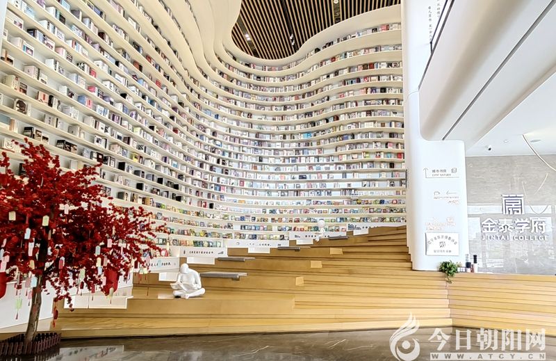 走進(jìn)位于遼寧省朝陽市雙塔區(qū)燕都新城第一中學(xué)燕都分校南側(cè)的金泰城市書房大廳內(nèi),首先映入眼簾的是螺旋狀樓梯藏書山。沿著螺旋狀樓梯往上走,便來到了城市書房的二樓閱讀區(qū)、休閑區(qū)。