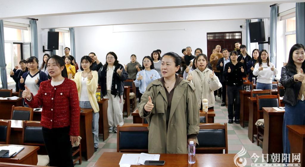 活動特別設(shè)計的團建環(huán)節(jié)充滿溫情。當老師們結(jié)合手語唱響《感恩的心》,團隊凝聚力得到升華。“走進學(xué)生身旁的教師是合格的教師,走進學(xué)生心靈的教師才是真正優(yōu)秀的教師”“手把手教學(xué)生做手工、發(fā)現(xiàn)學(xué)生的繪畫天賦……”這些日常被忽略的閃光點,在真誠交流中化作滋養(yǎng)心田的甘露?;顒游猜?,教師們鏗鏘有力的朗誦聲響徹會議室,堅定信念,用專業(yè)與愛共同守護特殊兒童的成長天空。
