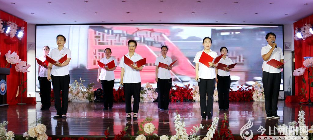 “我志愿加入中國(guó)共產(chǎn)黨……”活動(dòng)在莊嚴(yán)的入黨宣誓中拉開(kāi)序幕。校黨委書(shū)記李雅琴帶領(lǐng)新黨員莊嚴(yán)宣誓,全體老黨員重溫誓詞。當(dāng)鏗鏘誓言在報(bào)告廳回蕩,黨旗的光芒與教師們眼中的信仰之光交相輝映。這不僅是政治生命的莊嚴(yán)啟程,更是教育工作者對(duì)“為黨育人、為國(guó)育才”使命的永恒承諾。