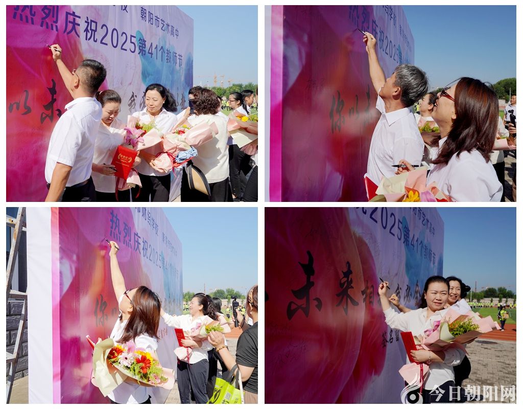 最后,藝術部師生獻上的音詩畫《鞠躬教壇 強國有我》將典禮推向高潮。鏗鏘的詞句與真摯的情感交織,表達出對教育事業(yè)的無限熱愛和對祖國的莊嚴承諾,感人至深,引來全場陣陣掌聲。典禮尾聲,教師們紛紛走向簽名墻,鄭重留下自己的姓名,以行動詮釋育人初心與使命擔當。