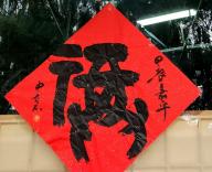 一周前,我曾路過(guò)遼寧省朝陽(yáng)市金?;▓@二期南門(mén)(天心湖對(duì)過(guò))的一間門(mén)市,被玻璃門(mén)上那個(gè)斗大的字吸引。當(dāng)時(shí)我與兩位文友在門(mén)前駐足,卻因門(mén)鎖緊閉,未能一探究竟,只將那筆墨的神韻與“福”字的猜想留在心底。