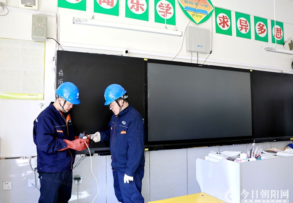 國網(wǎng)朝陽供電公司工作人員對朝陽市第一高級中學(xué)教室用電設(shè)備進(jìn)行安全檢查