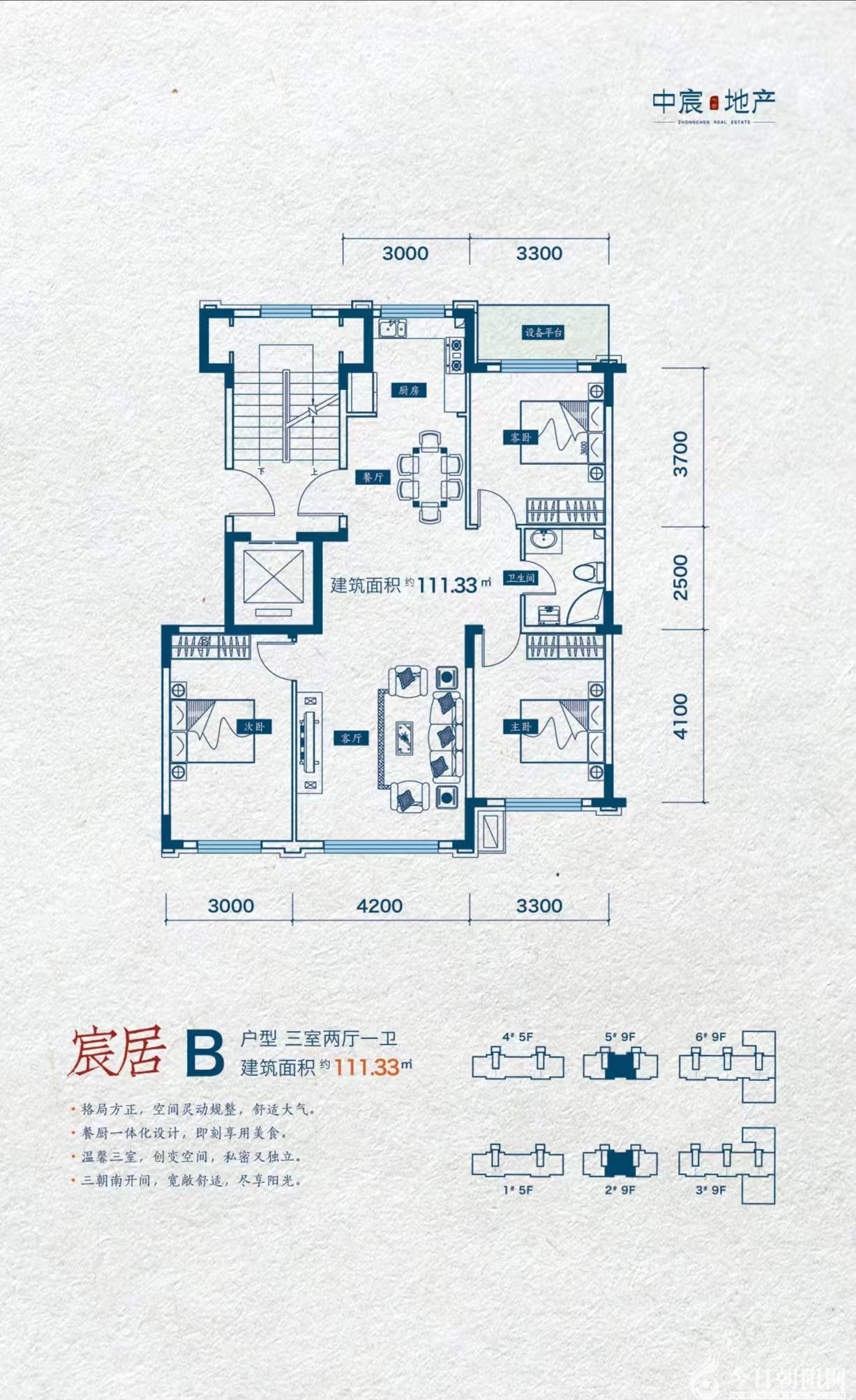 中宸學(xué)府住宅為坐北朝南向,樓間距寬,多層樓間距約38米,日照光足,南北通風(fēng),冬暖夏涼。住宅建筑面積約96-127㎡,兩居、三居都有,戶型設(shè)計(jì)方正實(shí)用,動(dòng)靜分區(qū),廚衛(wèi)分離,主、客臥互不打擾,均為一梯兩戶,住宅一層南、北有花園,園區(qū)綠化率30%,綠化設(shè)計(jì)以休閑為主題,圍繞活動(dòng)、休閑的內(nèi)容布置,有參與趣味,是人們交流的場所;由草地、灌木、常綠喬木組成,形成不同層次綠化,達(dá)到春夏秋冬不同季節(jié)有綠色、有花香的效果;小區(qū)安全防衛(wèi)智能化管理,配備樓宇可視對講、一卡通門禁系統(tǒng)等。小區(qū)建成后由朝陽永安物業(yè)管理有限責(zé)任公司采取全封閉式管理,人車分流,外觀時(shí)尚、大方,物業(yè)管理服務(wù)到位,配套齊全,安防智能化設(shè)備讓業(yè)主生活在小區(qū)既舒心又放心。