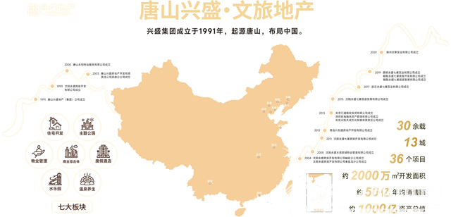興盛集團(tuán),堅(jiān)持“真實(shí)做人、誠(chéng)信待人、重約守諾、爭(zhēng)創(chuàng)一流”的企業(yè)精神,“質(zhì)量第一、信譽(yù)至上”的經(jīng)營(yíng)理念,自1991年成立以來(lái)始終保持健康快速發(fā)展,在多個(gè)項(xiàng)目中獲得較高投資回報(bào),公司不斷發(fā)展壯大。自企業(yè)于唐山地區(qū)創(chuàng)建以來(lái),二十多年的成長(zhǎng)與積累,先后在沈陽(yáng)、青島、承德、朝陽(yáng)、武漢、昆明等地成立地產(chǎn)分公司,將企業(yè)精神的種子播散在更加廣闊的土地之上。后又成立北京、上海、深圳投資公司以及影視制作公司,投身金融及文化影視制作領(lǐng)域,使企業(yè)發(fā)展更加全面化、多樣化、立體化,在房地產(chǎn)、文旅、金融三大板塊日臻成熟。