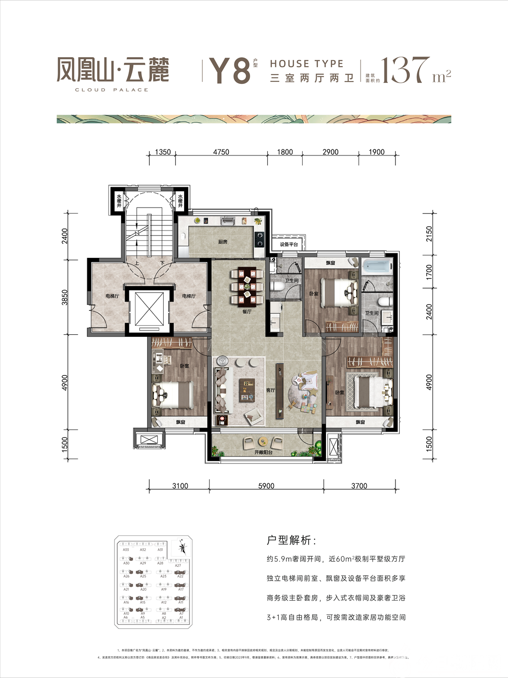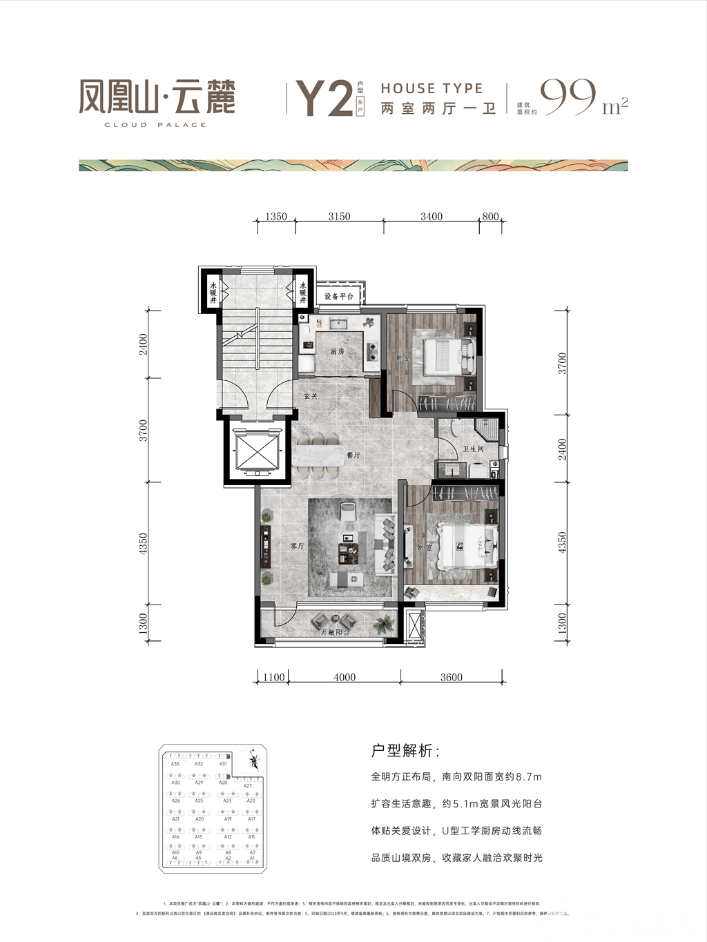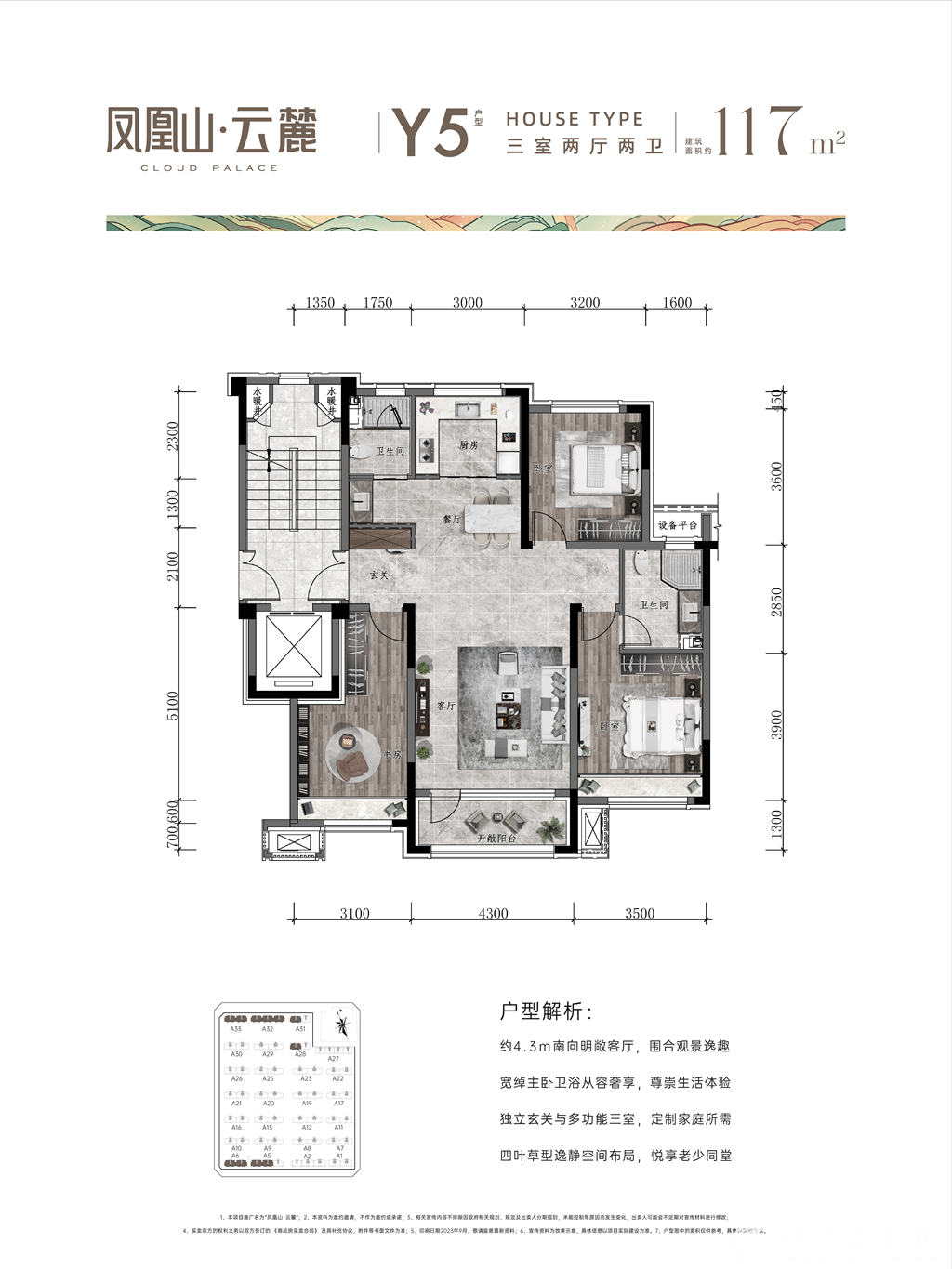 鳳凰山·云麓,是金泰地產(chǎn)與中宇地產(chǎn)兩大實力巨擘聯(lián)袂,獻給遼寧朝陽的首座山居作品。背靠國家4A級景區(qū)鳳凰山,面瞰大凌河,環(huán)享約67平方公里原生自然,高達85%森林覆蓋率圍合修身養(yǎng)性之境,以一線城市眼界打造朝陽生態(tài)樣板。項目坐落于鳳凰大街與菩提路交匯東北200米處,整體約45萬方體量,分四期開發(fā),產(chǎn)品類型涵蓋山間洋房、合院別墅、潮流商業(yè)。目前在售A組團【云廬】,約1.5極低容積純粹洋房住區(qū),約90-165㎡山境洋房,演繹寬幕生活格調(diào),以一道隱逸的山居門牌,劃界朝陽純粹圈層。在山的語境下,項目營造山水間城市書房、云麓生活中心、4A級景區(qū)文化商街(規(guī)劃中),集娛樂、休閑、購物、餐飲于一體,筑造朝陽市宜居宜業(yè)宜商宜游的地標名片,打造“品質(zhì)一流、舒適宜居、配套完善、環(huán)境友好”的山居理想生活藍圖。
