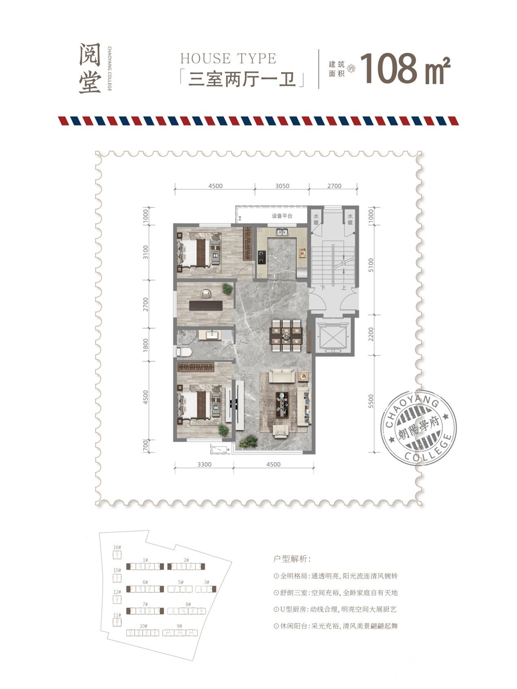 【樓幢層高】A區(qū):3棟10層、3棟11層 B區(qū):15棟8層(帶閣樓)、3棟16層(帶閣樓)