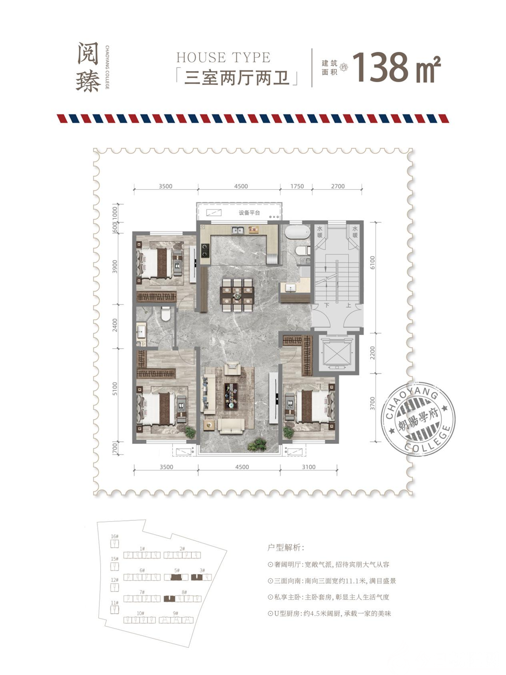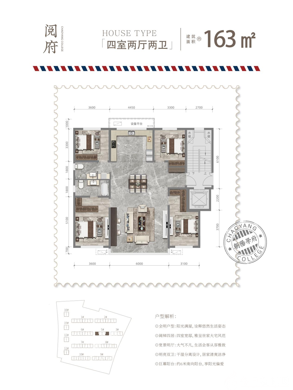 朝陽學府項目位于朝陽四高中原址,是金泰地產(chǎn)與中宇地產(chǎn)兩大公司強強聯(lián)合打造的項目,也是金泰地產(chǎn)歷經(jīng)十余載打造的唯一一個城市中心的項目。該項目居于朝陽中軸核芯之上,奢享多元配套,商圈、公園舉步即達,周邊幼兒園、小學、初高中等一應俱全,打造一站式全齡優(yōu)教體系。項目規(guī)劃占地面積約67.21畝,總建筑面積約10萬平方米。小區(qū)由13棟電梯洋房和沿街兩層商網(wǎng)組成,面積區(qū)間約59-163㎡,匠心打造美學建筑社區(qū),一軸五進園林儀制,移步移景。府啟低密洋房大境,敬呈城市上層品味。朝陽學府3+高定實景全屋智能樣板間盛大開放,61m²、112m²、138m²,明星戶型,敬獻全城,恭迎品鑒。