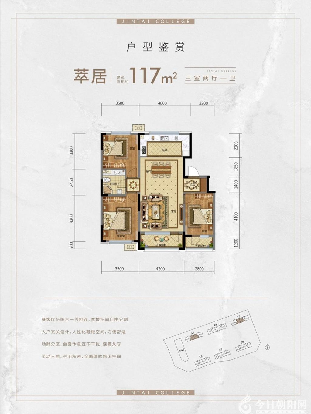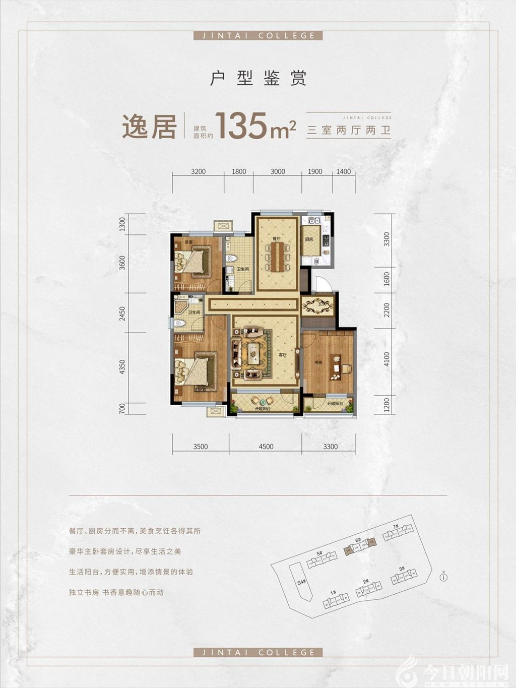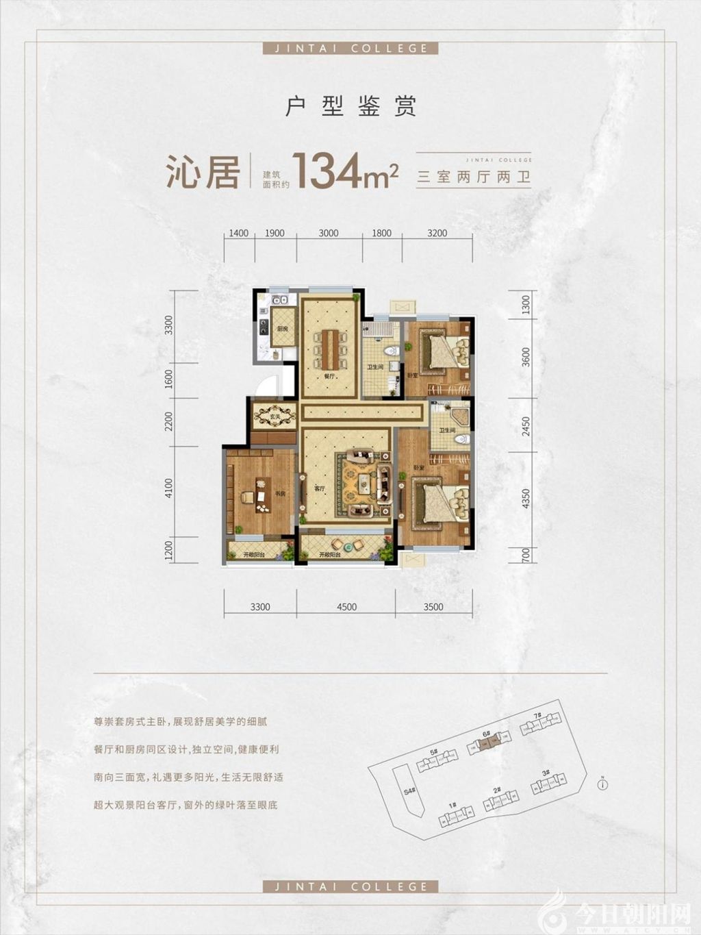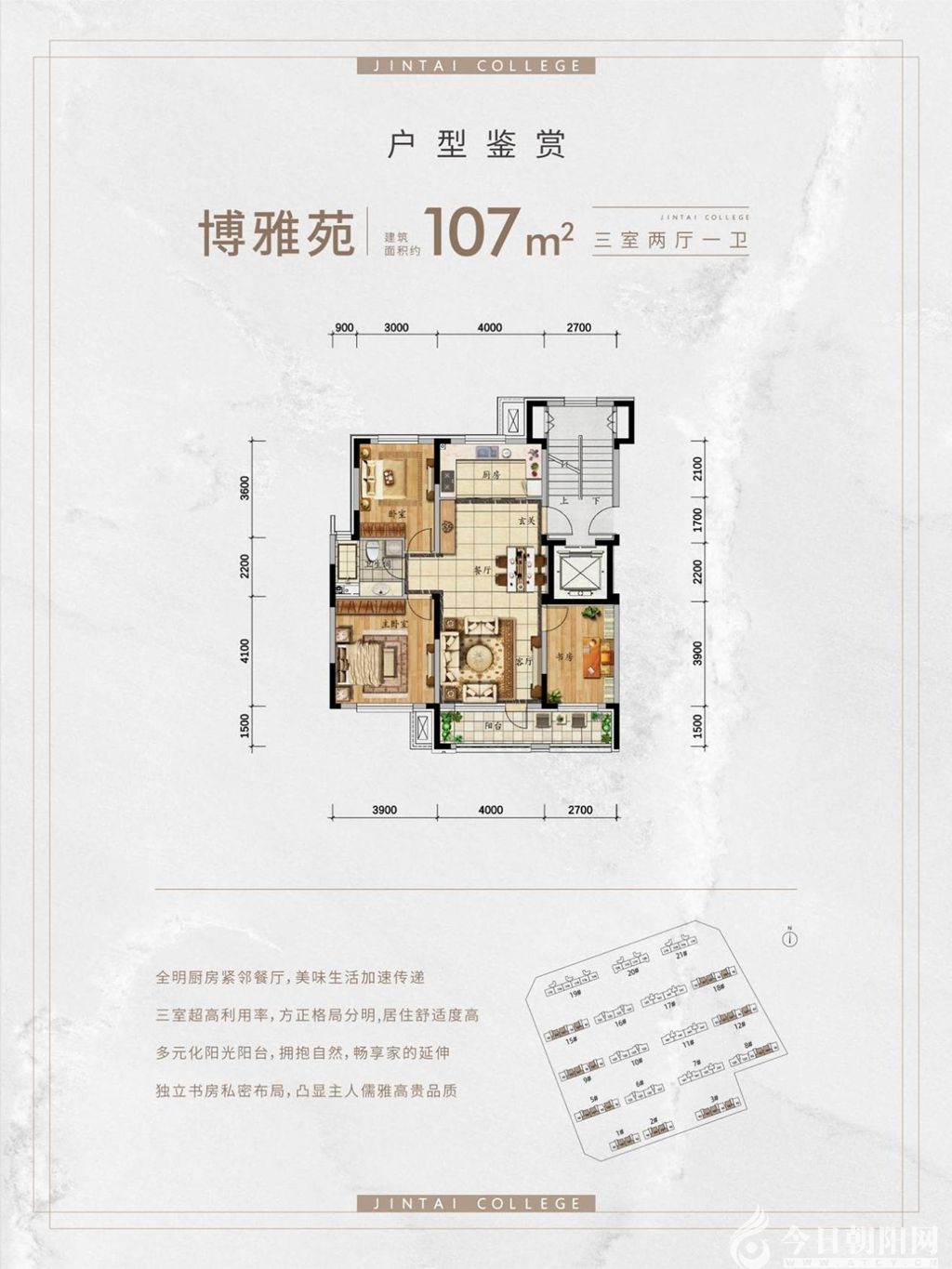 金泰學府三期項目分為A區(qū)實景現(xiàn)房、B區(qū)準現(xiàn)房,項目緊鄰朝陽一中燕都分校和朝陽四高中,出家門即校門。近鄰約17萬方的朝陽市體育公園,暢享生態(tài)樂園,未來周邊醫(yī)療、學校、娛樂等配套設施齊全,5分鐘生活圈可以滿足業(yè)主的生活需求。金泰物業(yè)系省級物業(yè)標桿,提供星級品質(zhì)服務,名門學府氛圍環(huán)繞,繁華萬象舉步即達,公園生態(tài)推窗即見,金泰學府將成為朝陽百姓理想生活的新選擇。