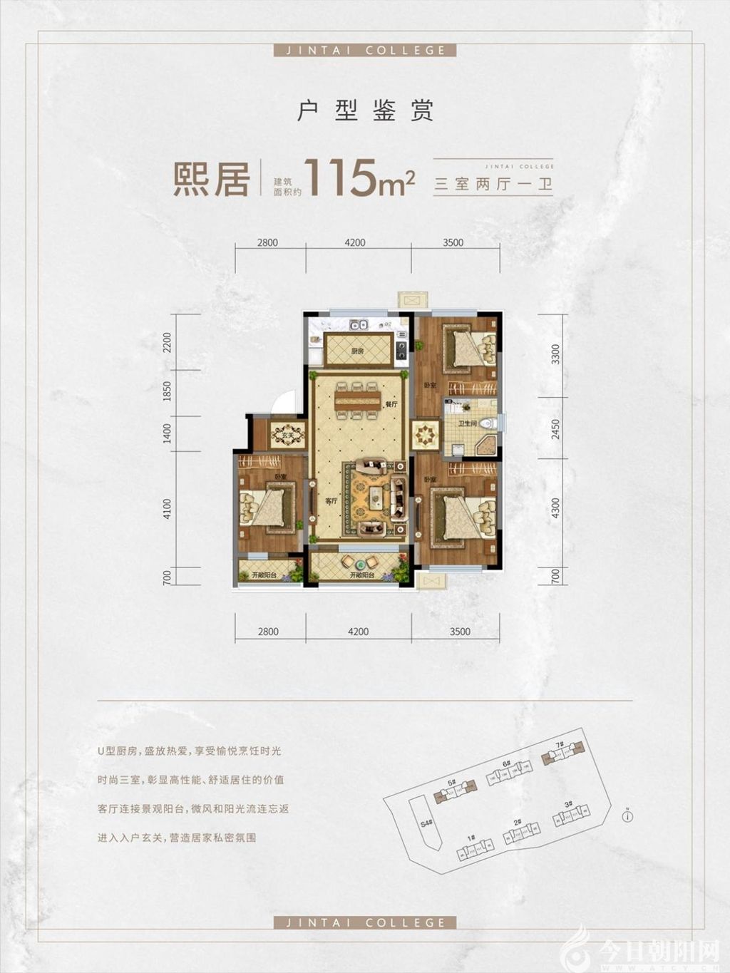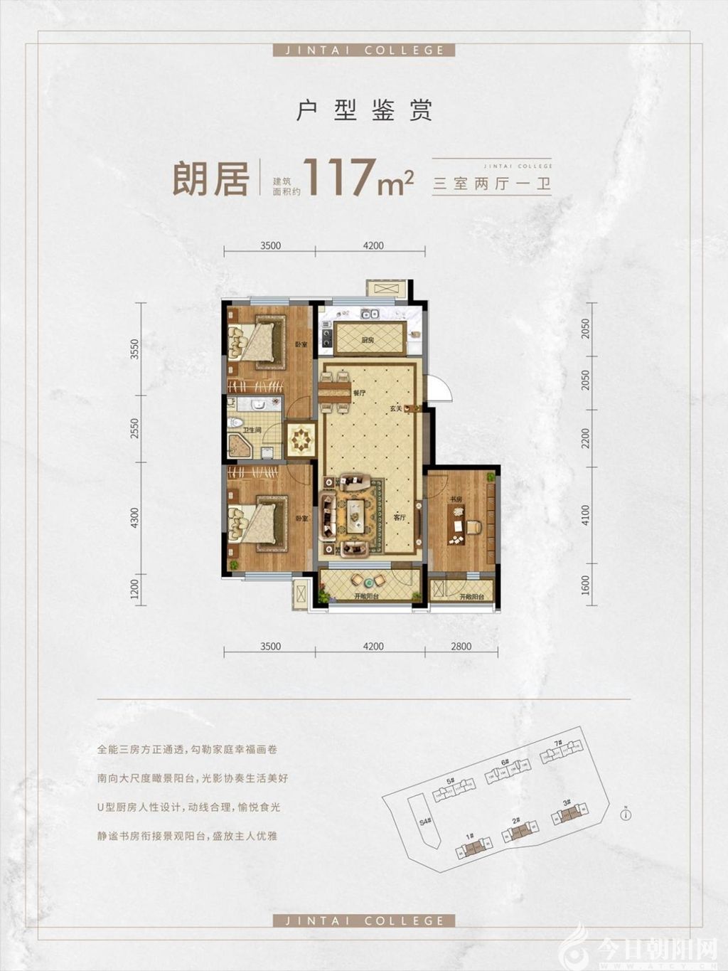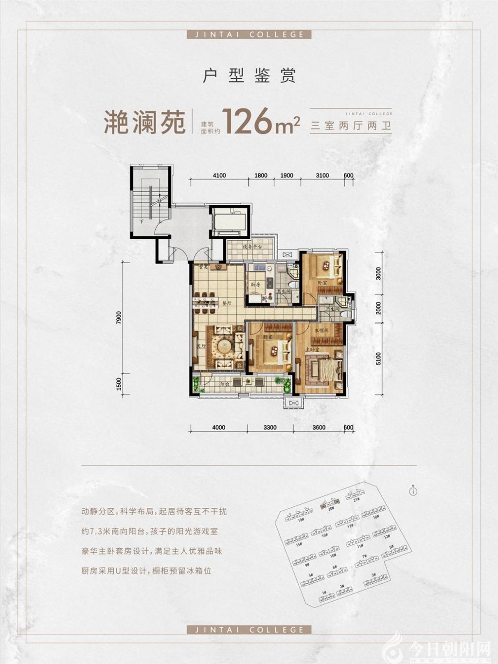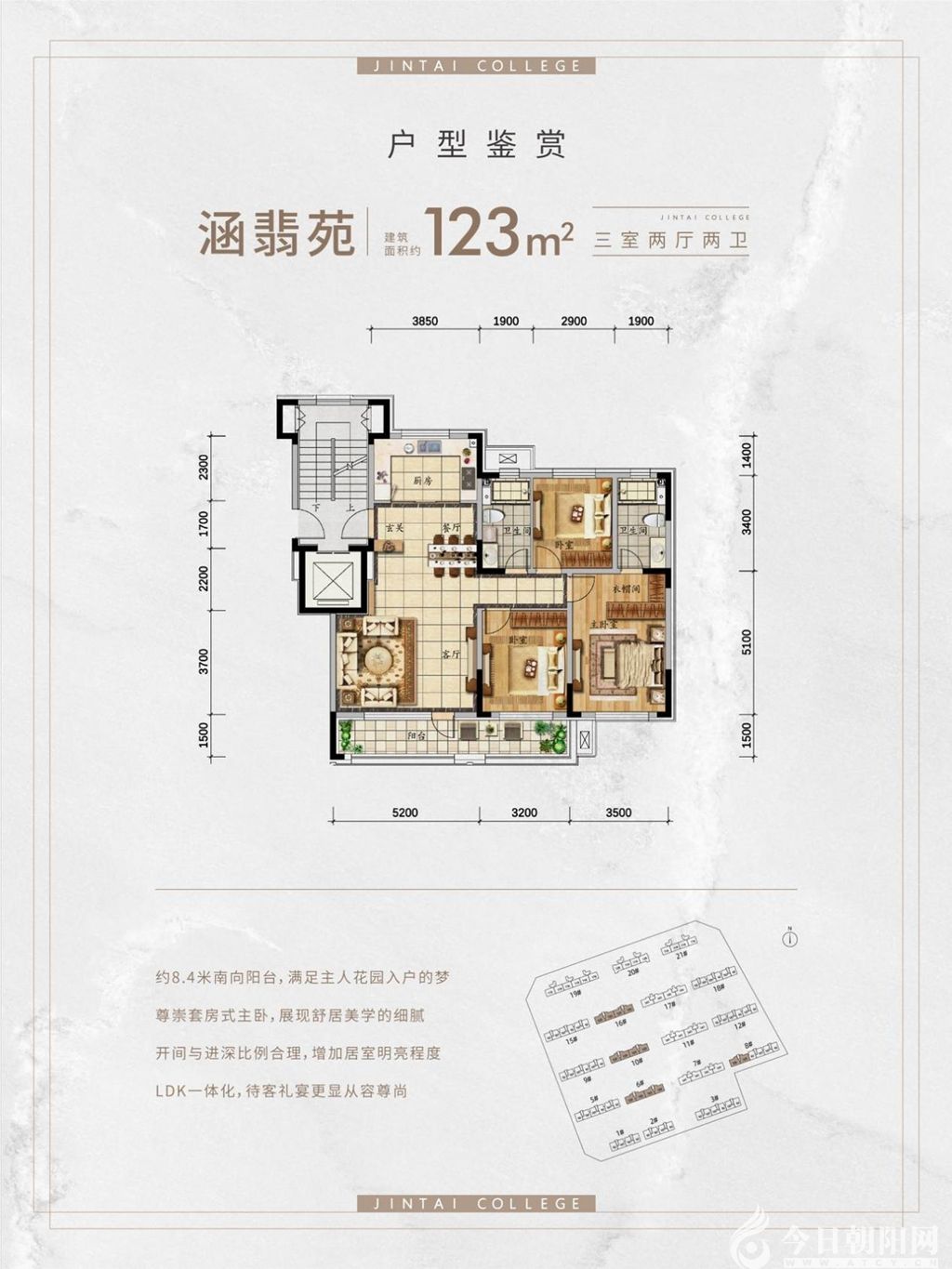 金泰學府三期項目分為A區(qū)實景現(xiàn)房、B區(qū)準現(xiàn)房,項目緊鄰朝陽一中燕都分校和朝陽四高中,出家門即校門。近鄰約17萬方的朝陽市體育公園,暢享生態(tài)樂園,未來周邊醫(yī)療、學校、娛樂等配套設施齊全,5分鐘生活圈可以滿足業(yè)主的生活需求。金泰物業(yè)系省級物業(yè)標桿,提供星級品質(zhì)服務,名門學府氛圍環(huán)繞,繁華萬象舉步即達,公園生態(tài)推窗即見,金泰學府將成為朝陽百姓理想生活的新選擇。