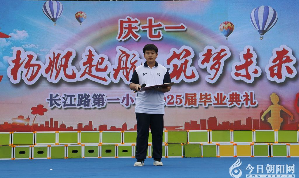 夏木葳蕤,歌聲悠揚。6月27日,遼寧省朝陽市龍城區(qū)長江路第一小學(xué)以“揚帆起航?筑夢未來”為主題,舉行了迎七一畢業(yè)典禮。朝陽市第一高級中學(xué)黨委書記李鐵松、朝陽市政府督導(dǎo)室主任刁敏、龍城區(qū)關(guān)工委常務(wù)副主任李波、龍城區(qū)教育局局長郭賀等領(lǐng)導(dǎo),與兄弟學(xué)校部分師生、本校相關(guān)教師、畢業(yè)生及家長齊聚一堂,共同見證少年們的成長歷程,共譜基礎(chǔ)教育與高中教育協(xié)同育人的動人篇章。