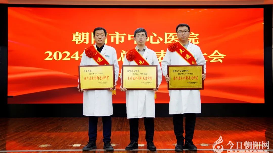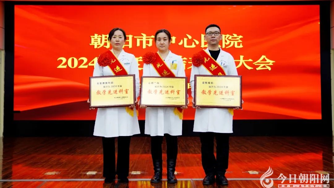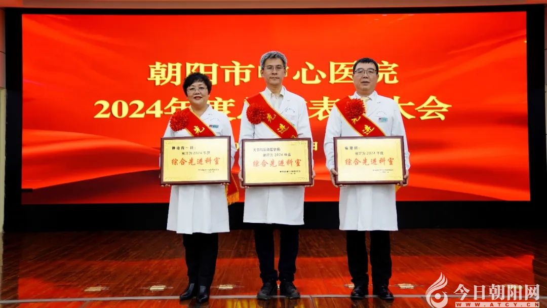 醫(yī)院黨委副書記耿東波宣讀了《朝陽市中心醫(yī)院關(guān)于表彰2024年度先進(jìn)集體和先進(jìn)個人的決定》。經(jīng)醫(yī)院黨委會研究,評選出2024年度在醫(yī)療、教學(xué)、科研等領(lǐng)域作出貢獻(xiàn)的先進(jìn)集體31個、先進(jìn)個人74名,同時為發(fā)揮示范帶動作用,對獲得國家、省市比賽優(yōu)異成績的集體和個人予以表彰。市衛(wèi)健委領(lǐng)導(dǎo)與院領(lǐng)導(dǎo)為受表彰的先進(jìn)集體和先進(jìn)個人進(jìn)行了頒獎。