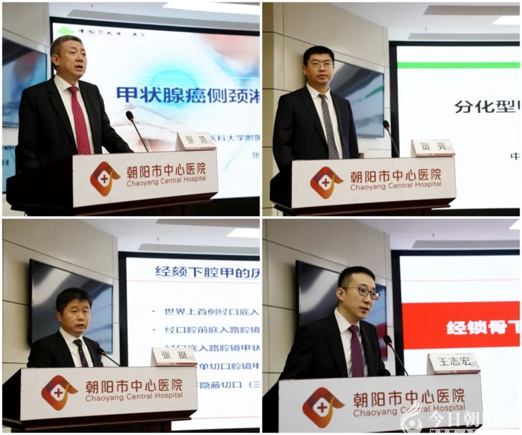 6月6日,“甲天下 行未來 遼寧省甲狀腺癌規(guī)范化診療——朝陽行”學(xué)術(shù)會(huì)在朝陽市中心醫(yī)院學(xué)術(shù)報(bào)告廳舉行。中國(guó)醫(yī)科大學(xué)附屬第一醫(yī)院副院長(zhǎng)張浩,甲狀腺外科王志宏教授、賀亮教授、張挺教授等權(quán)威專家蒞臨現(xiàn)場(chǎng)。朝陽市中心醫(yī)院領(lǐng)導(dǎo)班子成員及各縣(市)區(qū)醫(yī)院代表參加,會(huì)議由朝陽市中心醫(yī)院甲狀腺外科負(fù)責(zé)人張紫陽主持。