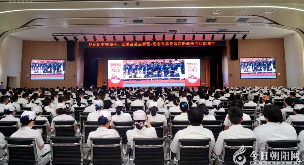 會議當(dāng)天,恰逢中國人民抗日戰(zhàn)爭暨世界反法西斯戰(zhàn)爭勝利80周年大會,節(jié)點(diǎn)特殊,意義非凡,朝陽市中心醫(yī)院醫(yī)療、醫(yī)技、護(hù)理、行政科室500余名代表與市衛(wèi)健委領(lǐng)導(dǎo)及前來考察交流的新疆第九師醫(yī)療機(jī)構(gòu)管理人員共同觀看了盛大的閱兵式,大家深受鼓舞、倍感自豪,進(jìn)一步激發(fā)雙方攜手前行、共筑健康中國夢的使命感。