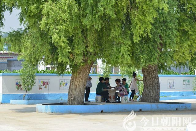 進(jìn)村之前,與周末還在油菜花田里忙碌的賈家店農(nóng)場(chǎng)黨委書記聶仁升通了電話。聶書記為不能陪我們前往采風(fēng)感到歉意的同時(shí),告訴我們?nèi)ケ钡铝⒓澹偷酱逯行牡膬煽霉帕鴺湎?,熱情好客的村民?huì)滿足你們所有的好奇心。依聶書記所說,我們驅(qū)車穿過兩側(cè)矮長城般干凈整潔的花墻路,掠過一戶戶農(nóng)家院外展現(xiàn)新農(nóng)村建設(shè)成果的墻壁畫,來到兩棵并排生長、兩人合抱粗細(xì)、枝葉繁茂翠綠的柳樹下。兩樹中間,放著一個(gè)石桌四個(gè)石凳,石桌上刻有象棋盤,幾位老人坐在樹下乘涼,見有來客,便從石凳上起身,讓與我們。待說明來意,他們熱情主動(dòng)地向我們講述起北德立吉村的歷史和民俗風(fēng)情。