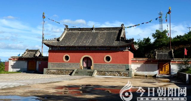 但凡歷史悠久的民族村落,總會(huì)有古塔或廟宇的存在,德立吉村亦如此。村西南山上的禪定法輪寺,初建于唐朝,大建于清順治十二年,寺院面積7000平方米,寺廟48間,竣工于乾隆初年,至今有300多年的歷史。它圍繞蜿蜒曲折的流水,居巍峨山巔,鳥瞰大凌河、老虎山河滾滾東流,不舍晝夜,又因其造型雄偉,別具一格,有著濃重的民族色彩,曾經(jīng)是朝陽市保存最完整的古建筑之一。禪定法輪寺,寺名源于乾隆皇帝來此巡視,經(jīng)寺歇腳,臨走時(shí)親書“禪定法輪寺”金匾賜之,該寺由此聲名遠(yuǎn)播,香火旺盛。
