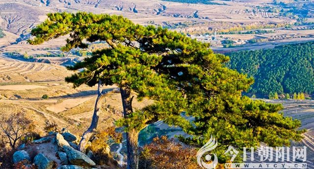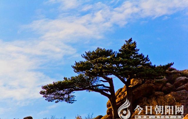 每一棵樹都在以自己獨(dú)有的姿態(tài)展示著數(shù)百年的風(fēng)采。山頂上有三棵松聯(lián)手而立,人稱“桃園三結(jié)義”,附會(huì)這個(gè)美好的傳說(shuō),是褒揚(yáng)三棵松樹歷盡幾百年的滄桑,依然在沒有寸土的巖石上青蔥如初,依然并肩擔(dān)雨雪抗朔風(fēng),那份情意真是驚天動(dòng)地、感人肺腑。