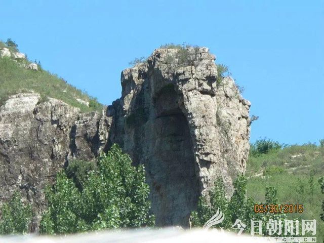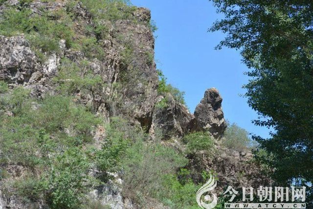 拐過山口,就是三家子村稍梁子組,象鼻山即在眼前了,觸手可摸。這里的山,沒有腳,陡陡峭峭的就起來一座。北面山坡,茂密的松樹,直立挺拔,碧綠濃郁。半山腰上,那裸露的巖壁,俏石,在霧靄中,變得雄偉而又秀美。