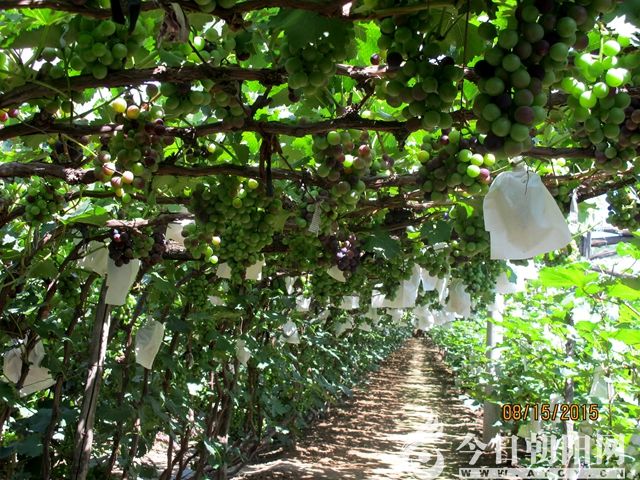 劉杖子這個葡萄王國雖然歷史不是很久遠(yuǎn),但發(fā)展得卻很快,他們的葡萄種植從上世紀(jì)80年代開始,到90年代初就發(fā)展到了近2000畝。目前,種植規(guī)模已達(dá)到5000余畝,其中裸地3500畝,冷棚1000畝,溫室500畝。栽培成了以巨峰為主,包括紅提、香悅、玫瑰香、夏黑無核、無核白雞心、巨玫瑰(京亞、貝達(dá)、紅地球、弗雷、)等20多個品種。這些通過標(biāo)準(zhǔn)化、規(guī)范化生產(chǎn)的葡萄產(chǎn)品,果實表面光潔,果粒大小整齊、鮮食可口、品質(zhì)好。他們成立自己的葡萄種植合作社,建立銷售市場,目前,這些優(yōu)質(zhì)的葡萄產(chǎn)品已沖出大山溝走向了全國各地。