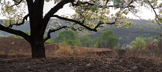 2010年4月,桃紅柳綠雪白的梨花開滿山坡。怎能讓如此良辰美景虛設(shè)?于是,曾兩次攜友去梨樹溝看梨花。偶拍得梨王所在山上的一張山峰照片,頗似一個壯士仰天大笑之態(tài),得友筱琪、片羽、彩虹等慫恿,遂編此《梨樹溝,有一個美麗的傳說》。