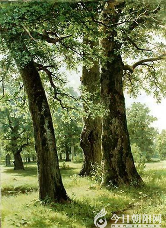許多年前的一個夏天,在金山嶺長城坐索道,從高空中俯瞰蜿蜒盤旋起伏的古長城,怦然心動的同時,發(fā)現(xiàn)一些高大的樹,那是我從未見過的樹種,像俄羅斯畫家希施金油畫里的大樹,神秘而令人敬畏。樹干高聳,樹枝繁茂,葉子鋸齒般開裂,像涂了油脂般閃光,上面綴著簇擁的橡果,心里閃過一個念頭,這一定就是橡樹,詩人舒婷《致橡樹》里寫到的樹,是偉岸的樹。