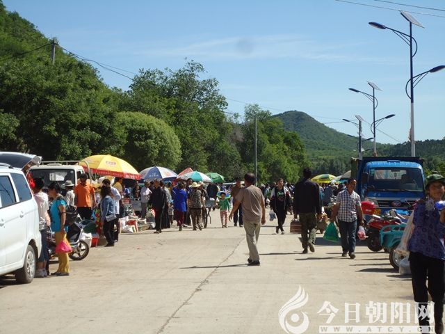 又走了不到半里路程,眼前還是綠色纏繞,耳畔忽然人聲犬吠,吆喝聲、叫賣聲打破了山林的寂靜,卻看不見人影。一行人加快腳步 ,山路盡頭,眼前豁然開朗,像是變戲法一般,便置身于劉杖子大集了。寬闊的柏油馬路,熙熙攘攘的人流,討價(jià)還價(jià)的小商小販,盡收眼底,好一派繁榮景象!