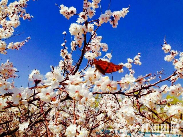 遠(yuǎn)遠(yuǎn)望去,滿山的杏花,沐浴著陽(yáng)光,一片雪白,讓人眼花繚亂,目不暇接……
