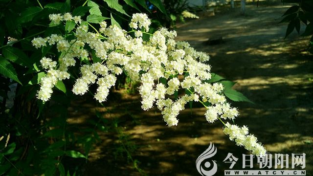 五月下旬始,暴馬丁香的花期就到了,她幾乎會一直開到六月終了。團團簇簇白色的小花兒,在高高的枝頭悄然怒放,隨風飄散著馥郁的芳香。比暴馬丁香稍晚一點的是珍珠梅,潔白的小花兒簇生枝頭,花香四溢。小巧圓潤的花蕾,如同一粒粒精致的小珍珠,很是惹人喜愛。暴馬丁香剛要飄落枝頭,高大的欒樹也開出了黃色的小花兒,不久就開成了一樹樹的金黃。合歡花也不示弱,不知什么時候已綻開了纖細的花絲,猶如一把把粉色的小折扇,和風送來縷縷幽香。同樣是開在樹上,棗花兒是最不惹人注目的,黃綠色的米粒大的小花兒簇擁在枝葉間,默默的吐露香醇。“棗花雖小能結實,桑葉雖柔能作絲”,每每看到小小的棗花兒,就仿佛看到紅瑩瑩的大棗掛滿了枝頭,那感覺也是甜絲絲的。