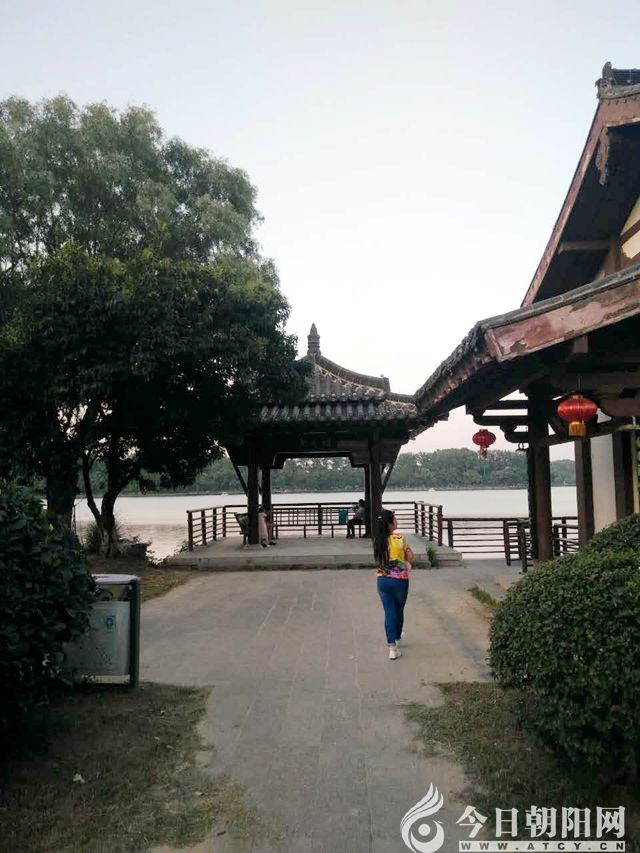 走近右邊一灣湖,整個湖面呈現(xiàn)不規(guī)則的橢圓形,平靜墨綠的湖水,如鏡面,在夕陽的余暉下閃著金光,逼仄了雙眼。湖面上,幾艘小船正愜意地漫游,應(yīng)了那句“舟在碧波上,人在畫中游”。岸邊,小涼亭,小茶館,小橋,還遍布了一些不知名目的樹木。走在其上,欣賞湖景,心曠神怡,妙趣橫生!間或有練習(xí)“美聲”和“獨(dú)舞”的藝術(shù)人,高歌,勁舞,為湖面的美做了最好的點(diǎn)綴。立于涼亭上,欣賞著靜靜的湖面,猶如傾聽著它心靈的訴說。歷史的滄桑巨變,時代的不斷變遷,在這條歷史悠久的湖面上書寫著,留存著!它寫得下歷史,聽得了嘈雜,依然榮辱不驚,默然不語……友人說,湖水好靜呀!默默地望著它,平坦,靜然,倒像極了心湖!