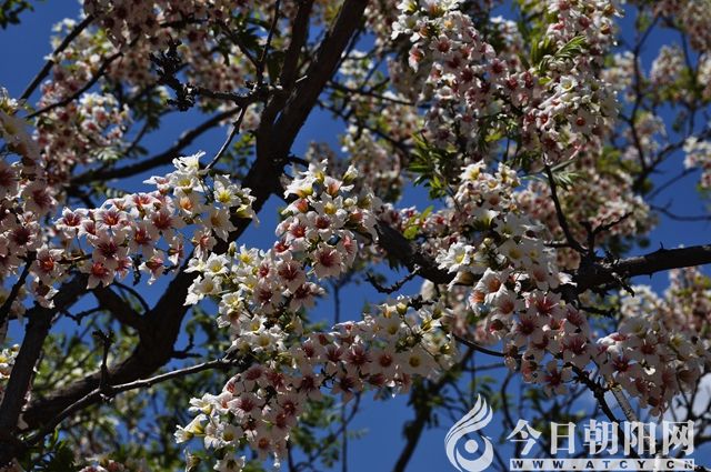 那日午間,同去的朋友撲克甩得正酣,我獨自走進文冠果林深處,置身在一片花海之中,遠眺對面山坡漫山遍野的文冠果,花開得正好,如雪,如云,如棉,像梨花又似杏花,花心紅的雅致,黃的脫俗,而花海之上蔚藍的天空,漂浮著幾朵白云,與文冠果一望無垠的花海相互襯托,那么壯觀,而又那么凄美,其景動人,其情感人,我不禁淚流滿面。感動于你“我愛你時你正一貧如洗寒窗苦讀,離開你時你卻金榜題名洞房花燭”的無私的愛,感動于你不為俗世所累,默默盛放在鮮為人知的角落,獨自開著謝著一個又一個生命的年輪;感動于你的“默然相愛,寂靜歡喜”……