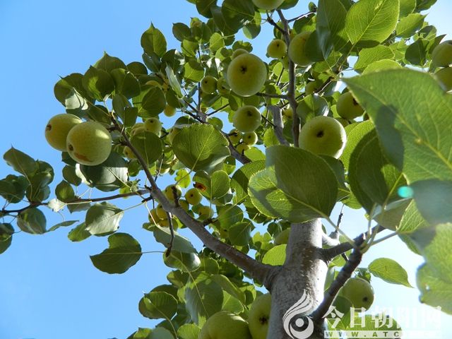 再往山里走,就是兩片梨園??拷竭叺氖抢侠鎴@,蒼勁的老梨樹樹皮龜裂,虬枝硬朗,張開了雙臂摟著秋天,喃喃地訴說(shuō)著吸天地精華的梨子的故事。新梨園梨樹個(gè)頭雖小,但生命力旺盛,雖無(wú)春天風(fēng)姿綽約之態(tài),但果實(shí)密密麻麻壓滿枝頭,宛如葡萄一般,真的感慨柔弱的枝條竟能承擔(dān)起如此的重負(fù)。梨色全黃或綠中泛黃的梨子,入口后頓覺酸中有甜,脆爽多汁。而梨色泛青的梨子,還要假以時(shí)日才能入口。梨園主人告知說(shuō):“國(guó)慶假期便可入園采摘。”