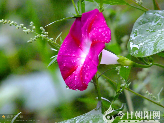 呵!雨中的牽?;?,比起晴日里多了幾分風(fēng)韻和姿色。薄如蟬翼的花片托著晶瑩的雨露,含笑欲滴,秀色可餐。那花的眉眼,嬌嬌生生,如泣如訴,讓人心生愛憐。當(dāng)我拍攝下它們,再一張張翻看的時候,張張都漂亮可人,即使是重復(fù)的,也讓我不忍舍棄。