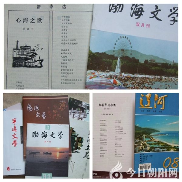眼前,一本20多年前《渤海文學(xué)》發(fā)表的《心海之歌》,讓我一下子年輕了二十年。案頭,一本當(dāng)年《寧遠(yuǎn)文學(xué)》發(fā)表的散文《走不出心中那道永遠(yuǎn)的風(fēng)景》,仿佛讓我回到了快樂(lè)的童年。桌面,那一本《渤海文藝》剛剛發(fā)表的《海韻詩(shī)情》,教我這個(gè)大山里走出來(lái)的娃看見(jiàn)了比藍(lán)天還要藍(lán)的大海。手里,這一期《遼海文苑》發(fā)表的《月亮河》《西山坡》,還有那一組《遼河》發(fā)表的嘉平詩(shī)歌選、那一篇在《中國(guó)兵工報(bào)》獲獎(jiǎng)的征文,如此讓我忘我流年,讓我看見(jiàn)了生活處處都有美麗的詩(shī)篇,讓我對(duì)激情燃燒的歲月有了新的解讀,新的詮釋,新的概念!