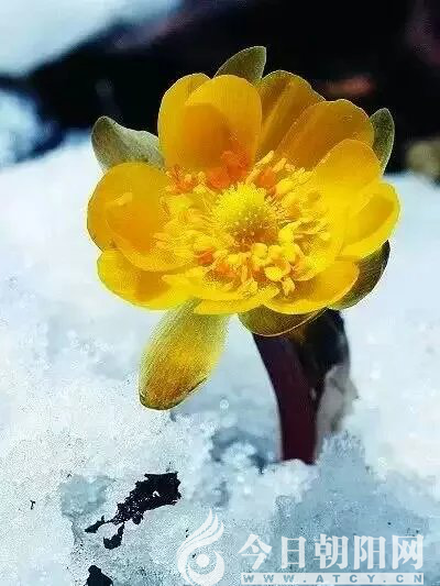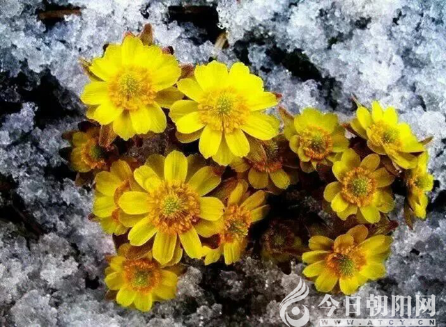 記得四十年前,正當(dāng)風(fēng)華正茂、初中讀書少年的我,也是一個(gè)晚冬新春的時(shí)候,學(xué)校組織我們同學(xué)到農(nóng)村鄉(xiāng)下進(jìn)行糖化飼料的科學(xué)實(shí)驗(yàn)推廣。有一天,我和幾名同學(xué)翻山越嶺、走在崎嶇的山間小路上,記得好像在一個(gè)向陽的山坡下,突然看見不遠(yuǎn)處的一片殘積雪地里,拱出一朵朵、一簇簇頂著雪片鮮艷無比的金黃色的花朵來,在滿目殘雪春芽待發(fā)的山野里,顯得格外醒目,抓人眼球,惹人生憐,讓人驚艷。