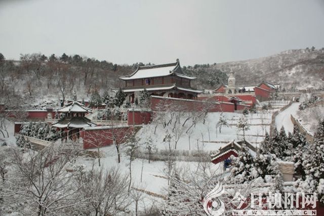 去年,我來過毗盧寺三次,都是在夏季。夏季山上植被繁茂,遮去了毗盧寺好多靈性的東西。原始的石碑,原始的留痕,還有古老的山洞,都沒有好好看看,好好記憶。這一次,雪后來此,長(zhǎng)壽山線條清晰了,松柏占據(jù)了毗盧寺的兩側(cè),張揚(yáng)出來的綠色,在那皚皚白雪的映襯下,與溫晴的陽光微微閃動(dòng)起來。其他的植被,早已褪去夏日的繁華。唯有松柏的青春在長(zhǎng)壽山上綻放。我提前下了車,徒步,往毗盧寺走。走的同時(shí),給我第一感受,就是一個(gè)靜。陽光是靜的,毗盧寺是靜的,所有的建筑呢,也都是靜的。雪后的毗盧寺,石階的雪還原態(tài)地安然在那,只有這條通向大殿的石板路,雪被道士清除了。留下一點(diǎn)雪,雪的韻味才在這里富有禪意,才給人生圣潔的遐想留下了空間。就說小雪里那塊石碑吧!夏天根本就沒看見它。冬天,繁華的植被退去了,把它留下。它與白雪映襯在一起,就折射出了歷史的佳話,石碑上刻著紅體字,雪花為白,字體為紅,這可是一種超凡脫俗的想象了。春天這里萬綠之中的一點(diǎn)紅,我倒沒有感覺驚詫,因?yàn)?,春天總是花兒張揚(yáng)的季節(jié)。這雪花與紅字的牽手搭背,該是一場(chǎng)隔世的交流,該是一場(chǎng)季節(jié)的情恩意長(zhǎng)。我站在路旁,想聽聽他跟雪兒,到底要說的是什么。結(jié)果呢,凡俗的心一直沒有靜下來,是不是這里太靜了,我的心跑偏了?我不甘心,看下去,也要聽下去。半天了,意念沒來,心聲不鳴。于是,眼光機(jī)靈地落到了那石碑上,鮮紅的字是:“欲悟色空為佛事,故栽芳樹在僧家,細(xì)看便是華嚴(yán)偈,方便風(fēng)開智慧花。”這是唐代白居易的詩句,看來,道家之地,還是詩人能描繪出這里的意境天華。讀了詩句,我才明白,這是天地自然留與人的空白。用不著瞎猜,站在這里,每一處都靈性著禪與意的感懷。潔白的雪,倚在石碑旁,詩句與陽光的對(duì)白。紅紅的字體,刻在石碑上,她們就前往一個(gè)故鄉(xiāng)的路上。白居易詩句里的生動(dòng)描繪把道佛兩家的“欲、悟、色、空”給聯(lián)系到了一起。無論看花,還是看山,也無論登高遠(yuǎn)望,還是低頭敬語,這些都會(huì)洗去人間那些浮躁的繁華。