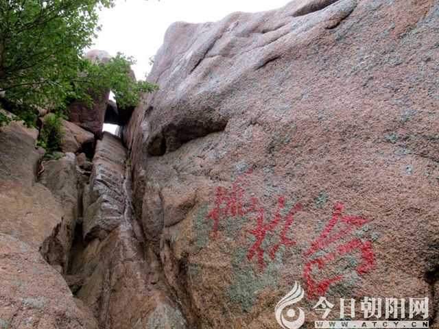 為了尋找賦有傳奇色彩的梳妝臺和馬蹄窩,我們就沿著指示牌一路走。山路狹窄,上上下下的,有的地方還必須借助旁邊的樹枝椏和山石才能通過。小虹螺山的美,美就美在滿山珠璣,美就美在一步一景,景景相連。飛龍瀑的三疊泉,范道洞,天狗望月,石猴,鸚鵡峰;群山蒼翠,千姿百態(tài),美不勝收啊!都讓人欲罷不能,因為一份驚喜就在前面等著。經(jīng)過了觀景臺和大風口,我們漸漸地走近了梳妝臺。梳妝臺下,有一座三丈二尺多高的一線天梯,最窄處一個人勉強通過,我戰(zhàn)戰(zhàn)兢兢跟著文友們往上爬。爬到一半時,往下一看,嚇得腿軟了。想下去還下不去,抬頭看上面,心突突地,還上不去了。這時候,上面的人就拉著我的手,下面的一個游客幫忙托著我的腳,費勁巴力把我弄上去了。站在梳妝臺上,因為剛才的緣故,我一陣眩暈,幸虧后面的文友把我扶住,讓我在石頭上坐下來。稍作調(diào)整,心情豁然開朗起來。極目遠望,村莊、城市和大海等都盡收眼底。山風跟我悄悄地耳語,似乎告訴我當年大遼蕭太后躍馬東征來到此地。傳說中的馬蹄踏痕,就是我眼前的那兩條褐色長條石頂端的馬蹄窩窩。它給我此次小虹螺山之行留下了最深的印象,讓我把它定格在我的相機里,定格在我的腦海里。
