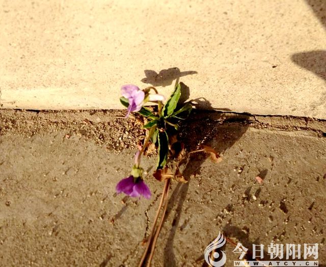 堤壩上的石縫里,有了小草的蹤跡,只是還未連成綠茵。沒錯,小草就是這樣,不屈不撓,有頑強(qiáng)的生命力,從不向命運低頭。走在臺階上,無意間發(fā)現(xiàn)一棵“小可憐”,在灰色的水泥臺階上安了家。這不是一棵普通小草,它已經(jīng)開了兩朵小紫花,淡定自若地在角落里靜謐綻放。我蹲下來打量著它,它沒有被我這個不速之客驚擾,還向我微笑并問候著。于是我和小草進(jìn)行了一段心交神會的談話: