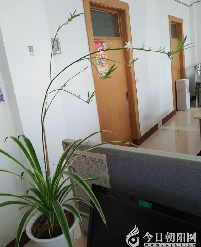由于同事精心呵護,吊蘭長勢十分喜人,一天天長大了。不知道什么時候,從葉叢中偷偷伸出來一個纖細(xì)枝條,綿軟得很有彈力。枝條越長越高,頂端還鼓起了小花苞。這幾天發(fā)現(xiàn)小花苞伸展開來,開出了一朵朵小白花,淡雅清新。小白花不寂寞,枝條上還坐著一個個小生命——小吊蘭,錯落有致,非常協(xié)調(diào),看著特別舒服。風(fēng)兒不時來撫摸吊蘭,吊蘭輕輕扭動身姿,小吊蘭、小白花在枝頭像娃娃蕩秋千一樣隨性。身處嘈雜的辦公室里,吊蘭像出淤泥而不染的大家閨秀,清麗脫俗、嫻靜高雅、端莊賢惠、青翠欲滴。