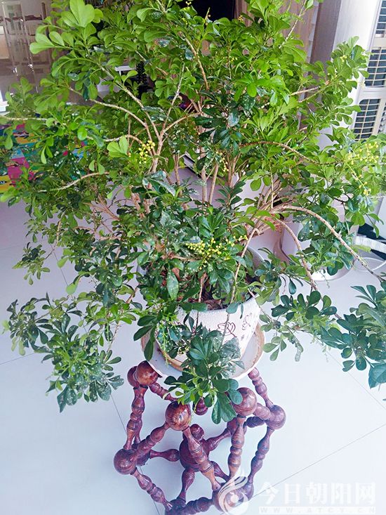 回到新居后我把花擺放到花架上,望著友人送的這盆花,竟叫不出花兒的名字來(lái),因?yàn)槿』ㄖ畷r(shí)友人未說(shuō),我也未問(wèn)。不過(guò)這花盆卻分外精致素雅,吸引了我的注意力。乳白色的花盆上錯(cuò)落地排列著不規(guī)則的斑點(diǎn),凹凸有致,花盆上裝點(diǎn)著幾片嫣紅色線條勾勒出的葉子,葉子旁簡(jiǎn)單的勾畫著些許同色的小花,從色調(diào)的搭配上讓我感覺這花盆的設(shè)計(jì)簡(jiǎn)約而不失高雅,樸素間透著清新?;蛟S是愛屋及烏的緣故,我竟關(guān)注起盆中的這株花來(lái)。蔥郁的葉子間開滿了一簇簇嫩黃色的小花,不時(shí)散發(fā)出淡淡清香,花的淡雅與花盆的素雅竟是如此相得益彰。望著這盆充滿朝氣與活力的盆中尤物,居然勾起了我的興致。于是,我隨手拿起手機(jī)給花拍照,開始上網(wǎng)查閱關(guān)于這花的相關(guān)資料。