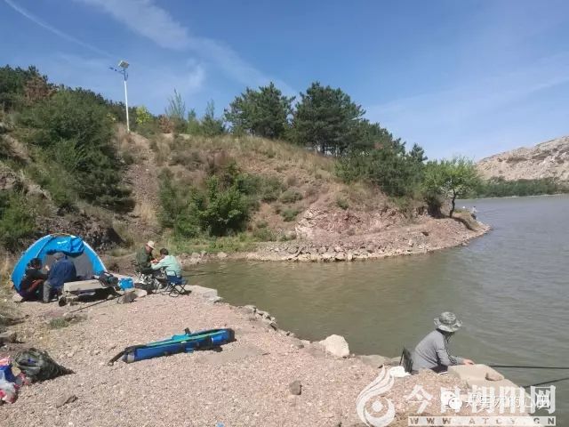慕容湖呈“人”字形,像兩只張開的雙臂,擁抱遠(yuǎn)方的客人。她安靜地躺在群山懷抱之中,湖面靜謐微瀾,如一面鏡子,照亮蒼穹。更像一塊巨大的珍珠鑲嵌在群山之中,靈氣十足。遠(yuǎn)處,偶有三倆只水鳥頡頏水面上空,旋即又低空掠過湖面,蕩起層層漣漪。拾級而下,到一八角涼亭,涼亭內(nèi)有石凳,凸顯雅靜,與平湖、群山渾然一體,讓人有一種“人在畫中游”之感。坐于石凳上小憩,一面和著潮氣的微風(fēng)輕輕吹來,撫慰著肌膚的每一個毛孔,清涼舒適,頓感心曠神怡,怎么一個爽字了得!曲折迂回的堤岸,散落著幾伙閑適的垂釣者,他們安靜怡然,目光緊盯魚漂,全神貫注,仿佛全世界都靜下來。我知道他們釣的不僅是魚,更是快樂,是悠閑。“智者樂水”,大多愛釣者對人生的態(tài)度,就像水一樣,悠然安詳。