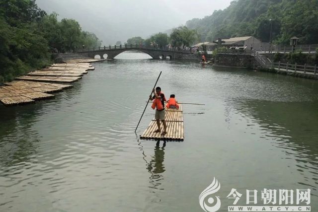 走出了小寨溝的溝門,就是獼猴谷景區(qū)。在一塊空地上,我看見了一個學(xué)者模樣的人,現(xiàn)場給游人寫詩作畫,這個引起了我的興趣,于是就買了幾幅帶有云臺山圖畫的字。在這美麗的山水里,總是覺得給自己帶回點(diǎn)紀(jì)念品才心安。同行的旅伴都去了獼猴谷景區(qū),我與他們又分散開來。獼猴谷景區(qū)的外面,是一個湖泊,湖泊微微蕩漾,有稍許的涼風(fēng)掠過臉頰。湖泊上面有著竹筏,有著精巧的獨(dú)木橋??粗倾紤杏崎e的湖上游人,湖邊的一排排木筏,我的心似乎產(chǎn)生了錯覺,這里,是不是江南水鄉(xiāng)?