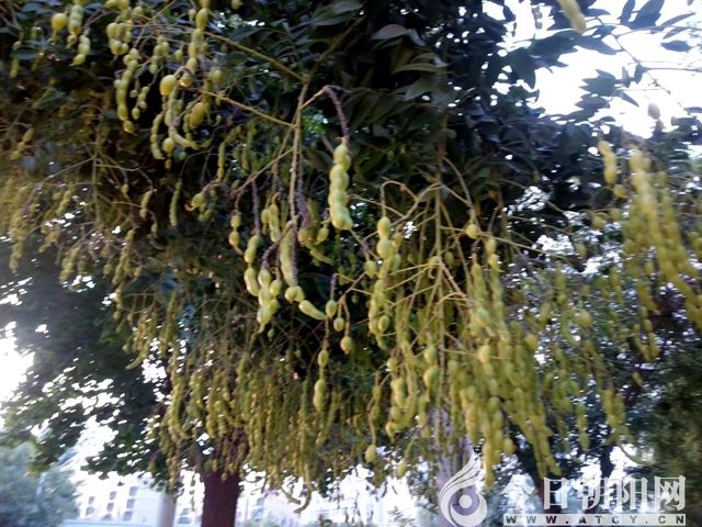 時間很快地進入了八月中旬,槐花漸漸地枯萎,飄落。樹上竟然結(jié)出了很多果實,那果實像倒掛在樹上一串串檸檬串成的冰糖葫蘆,晶瑩剔透,油綠欲滴,看得人心都醉了。