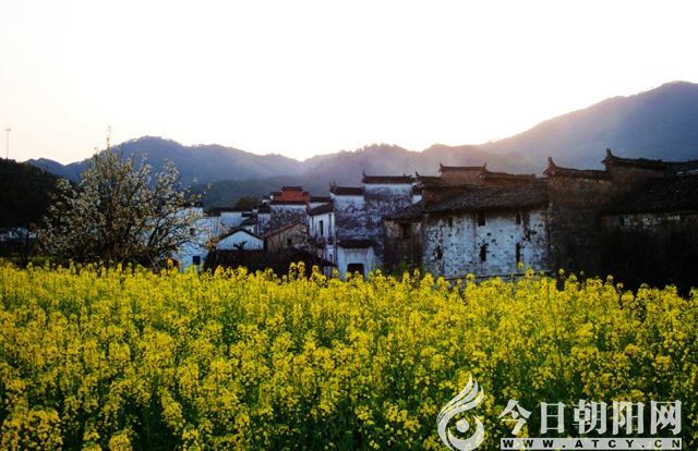 婺源的春色非常“養(yǎng)眼”,而江嶺村則是婺源的絕美之地。爬上江嶺的高處,千畝油菜花一覽無(wú)余,金黃色的油菜花肆意蓬勃地開(kāi)放。粉墻黛瓦的徽州民居鱗次櫛比,古老村落點(diǎn)綴在廣闊的油菜花叢中,成為江嶺田園風(fēng)光一道亮麗的風(fēng)景。