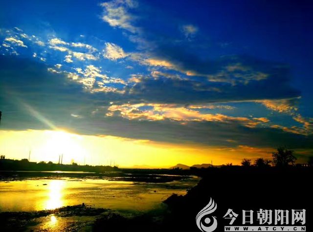 倘若旭日初現(xiàn)時(shí),站在古老的凌河岸頭,眺望天際彩霞,盡享自然畫卷的怡美。云影散淡間,噴薄的紅日猶如奔放的少男少女,洋溢的激情染紅云裳,鮮活而壯美。此時(shí)的朝霞,依如一杯陳釀美酒,飲醉赤水金波;逶迤的河流,滌蕩著驛動(dòng)的心靈。