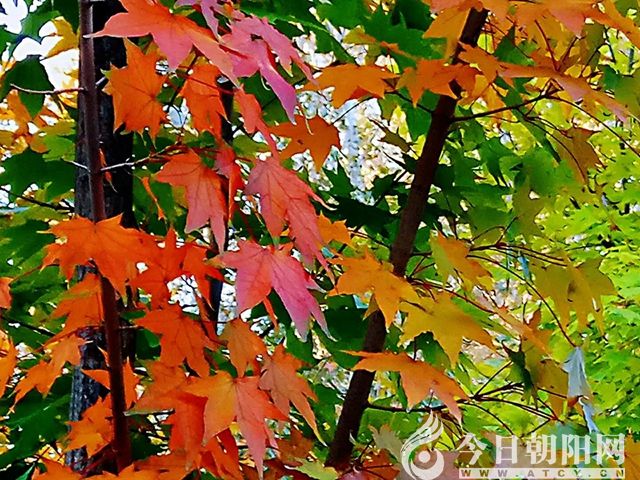 深秋時(shí)節(jié),深紅色的楓葉,淡黃色的楊樹(shù)葉,黃橙橙的柳葉,墨綠色的松柏,漫山遍野的樹(shù)木都在千方百計(jì)地渲染著自己的色彩,展示著自己的成熟,參差錯(cuò)落個(gè)頭兒伴著五彩繽紛的顏色,透視著秋的絢麗。